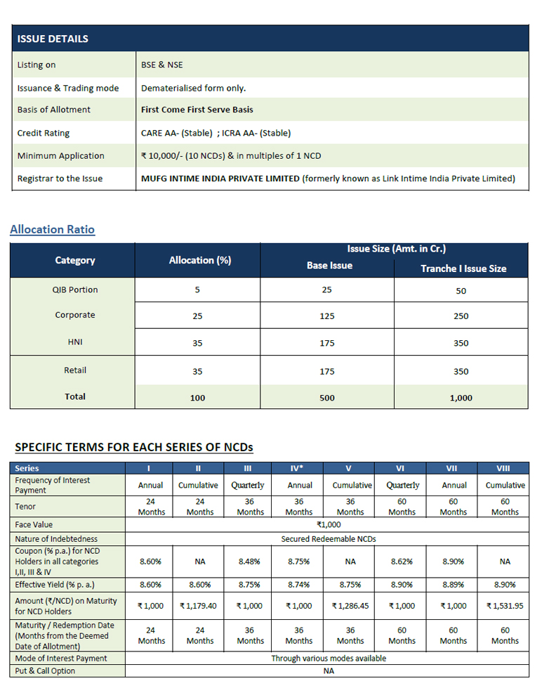 * The Company shall allocate and allot Series IV NCDs (36 months – annual option) wherein the Applicants have not indicated the choice of the relevant NCD Series.