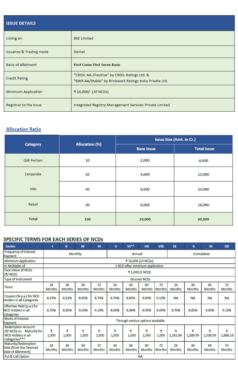 ** The Company would allot the Option VI of NCDs, as specified in the Tranche II Prospectus to all valid Applications, wherein the Applicants have not indicated their choice of the relevant Option of NCDs.